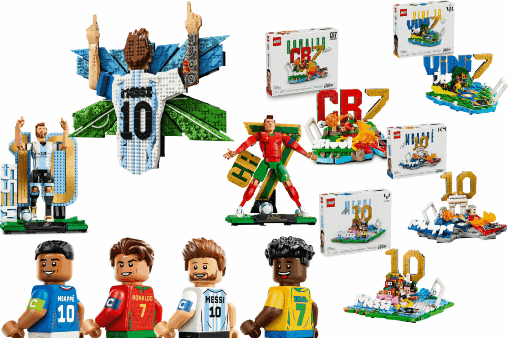 These sets perfectly capture each player’s personality: Messi’s calm genius, Ronaldo’s intensity, Mbappé’s speed, and Vinícius Júnior’s flair.
