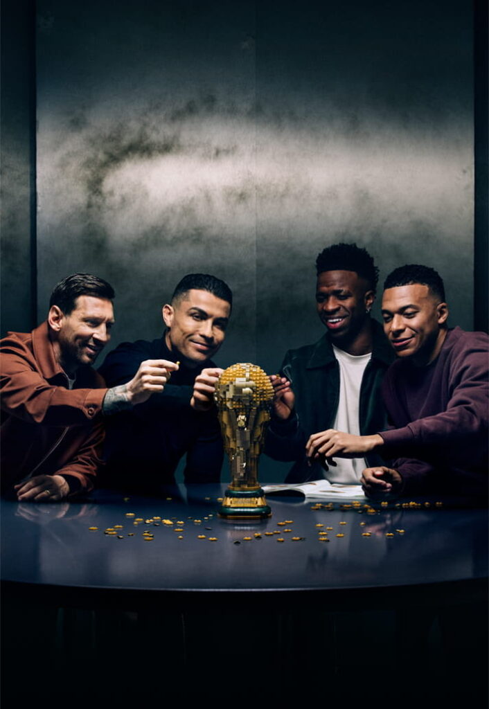 LEGO didn’t stop at the trophy. Collectible sets feature four of football’s biggest stars:
